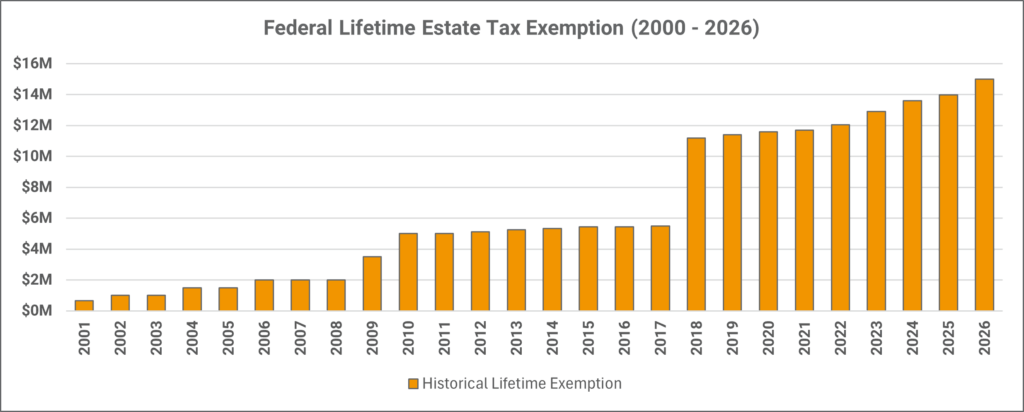 Estate tax exemptions are political. They have fluctuated significantly over the past two decades. Future legislative changes — whether higher or lower — remain possible.